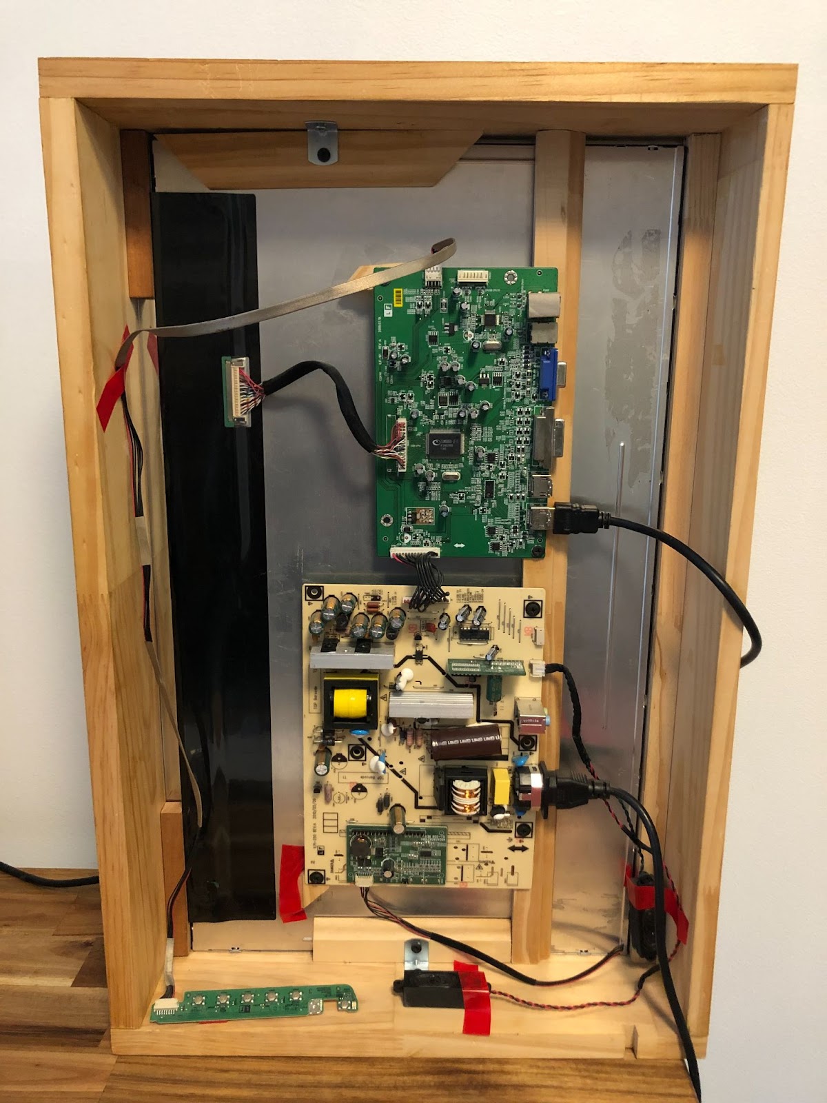 Looking into it now, I realize how little thought I put into the back of the frame as I assembled the hardware with the leftover wood I had from previous projects. I will need to put a proper back panel and rearrange the wires to avoid a fire hazard…
